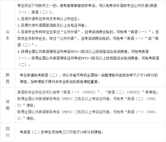 免考英语(二)在不同省份也有不同的要求,小聚已经帮大家整理好了。