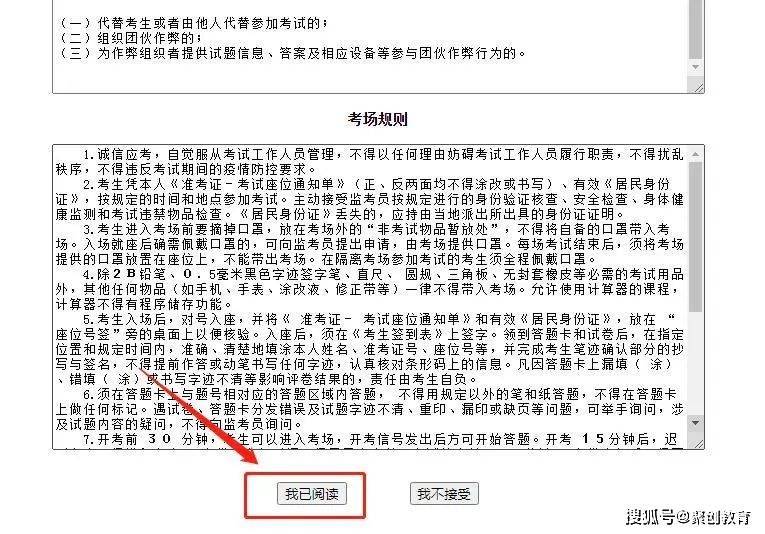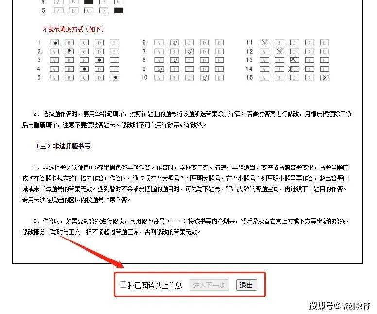 第三步,阅读完“致考生的一封信”和“答题卡填写规范”后拉到最底下勾选“我已阅读以上信息”后点击“进入下一步”