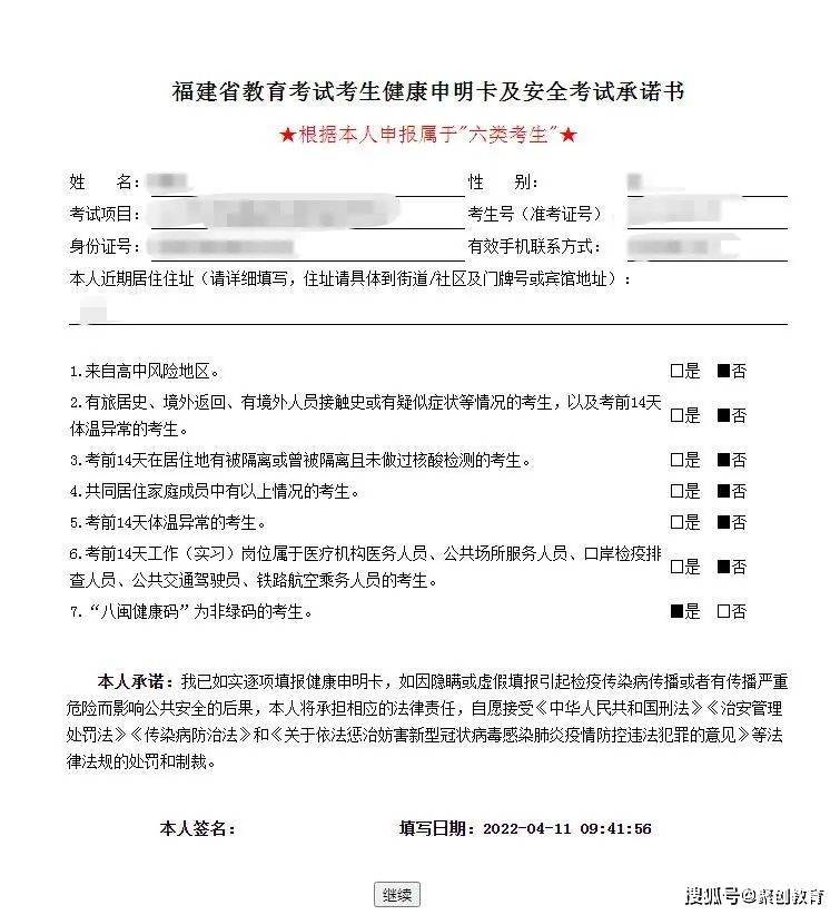 10月17日至21日填写《福建省教育考试考生健康申明卡及安全考试承诺书》和 打印准考证!